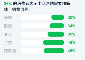 从全球规模来看,电商的开展在为商户进军新商场供给捷径的一起,也进步了顾客关于购物体会的等待。想要赢得海外顾客心智,我国出海品牌需求从顾客购物体会层面动身。《白皮书》的数据标明全球约36%的顾客希望电商网站精简线上购物流程;而且全球约56%的顾客希望网购时能有多种付出方法的挑选。