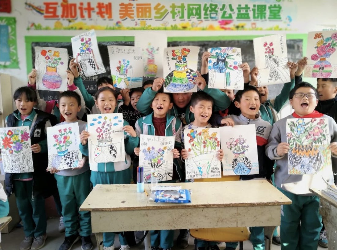 为此沪江在十五届上海教育博览会公益发布会上,约请来自台湾著名画家、夏加儿美术教育参谋杨松寿,于线上辅导万名村庄学生绘画。孩子们一边在线上的“互+方案”美丽村庄公益课程中与艺术教师学习,一边在全国各地的教室中提起了自己的画笔。